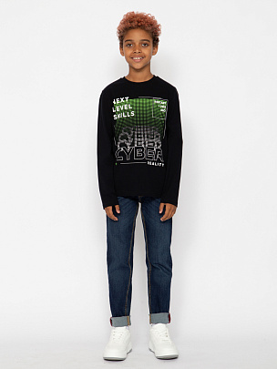 Джемпер с длинным втачным рукавом. Воротник из материала с добавлением эластана. Перед декорирован принтом "Киберкоманда".