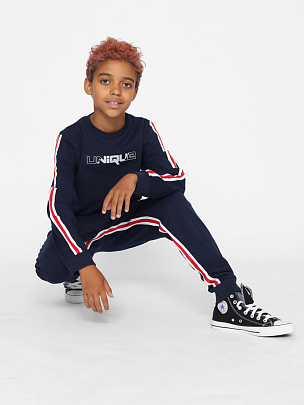 Джемпер с длинным втачным рукавом. Низ изделия и рукава обработаны поясом и манжетами из полотна с эластаном. Рукава декорированы вязаными лампасами. Перед декорирован принтом с эффектом "Высокая база" "УНИКАЛЬНЫЙ". Брюки с притачным поясом и манжетами. В пояс вставлена резинка и функциональный шнур. Пояс и манжеты выполнены из полотна с эластаном. На передней части брюк расположены карманы с подрезным бочком. Шаговые швы декорированы вязаным лампасом. Передняя половинка брюк декорирована принтом с эффектом "Высокая база" "УНИКАЛЬНЫЙ".